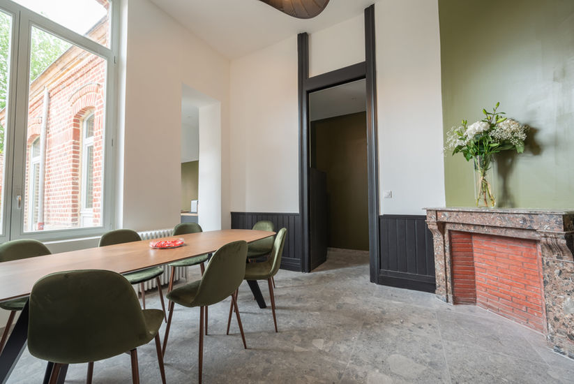 L'hôtel particulier Mimerel offre 520 m² sur 3 niveaux édifiée en 1902 en plein cœur du quartier des grandes familles industrielles de Roubaix.